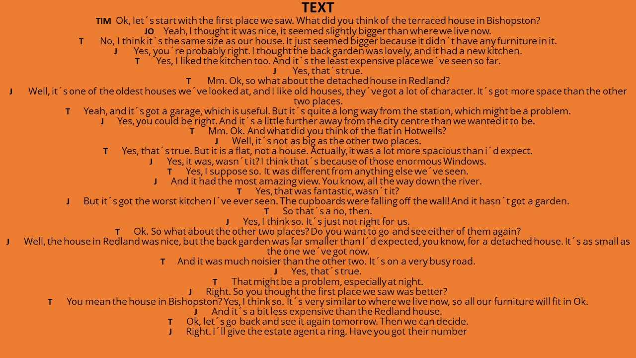 Look at the sentences. Do you think they describe the house in Bishopston (B), the house in Redland (R) or the flat in Hotwells (H)?